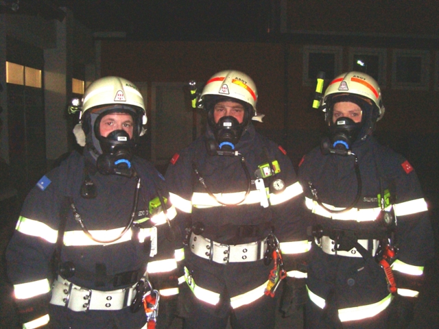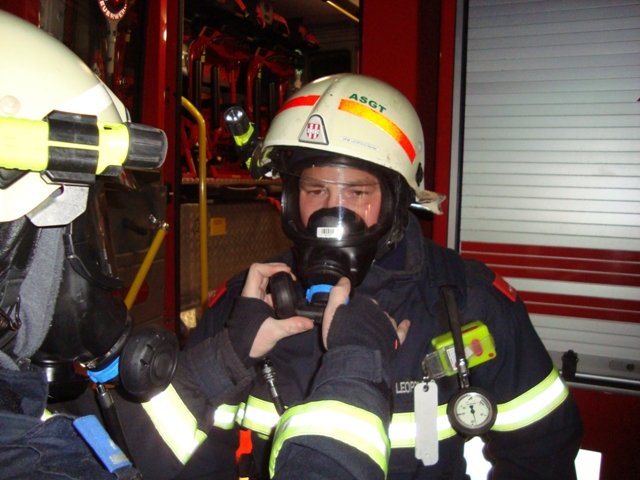 Bereits am Abend wurden die ersten Atemschutzgeräteträger auf die neue Ausrüstung eingewiesen. Im Zuge dieser Einweisung wurden die Lungenautomaten getestet, des weiteren wurde das Herstellen der Einsatzbereitschaft während der Fahrt geübt.