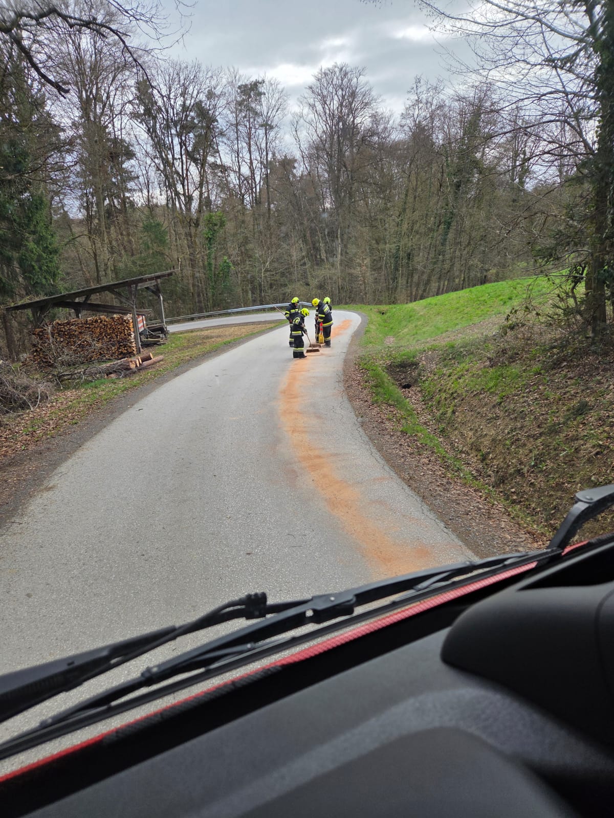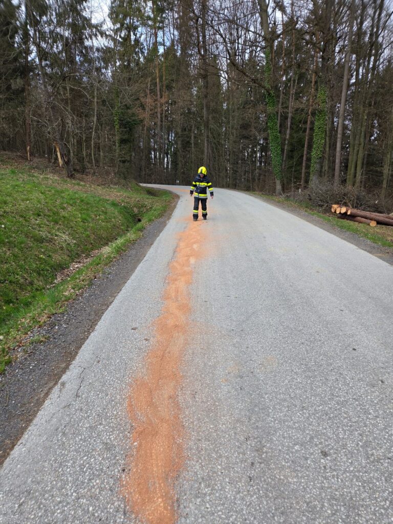 Am Freitag, dem 27.03.2025, wurde die Freiwillige Feuerwehr Krumegg um 12:30 Uhr zu Ölbindearbeiten auf den Hollerleitenweg alarmiert.