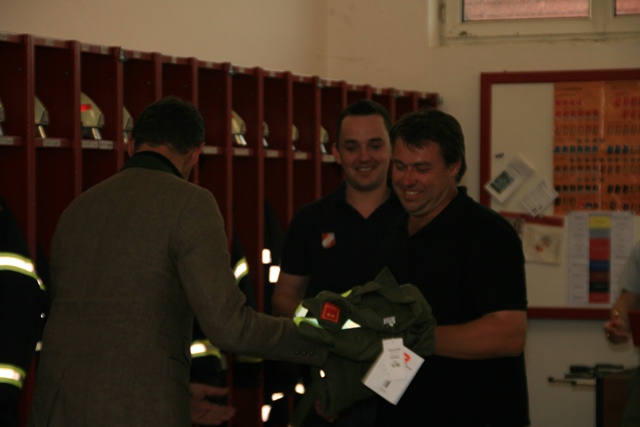 Die neue Einsatzbekleidung kostet insgesamt € 9.500,– und wird allen aktiven Feuerwehrangehörigen der Feuerwehr Krumegg zur Verfügung gestellt. Die Übergabe der neuen Einsatzbekleidung erfolgte durch den Bürgermeister Ing. Franz Knauhs und den Vizebürgermeister Günther Schwarz. HBI Rosenberger dankte der Gemeindevertretung für die große finanzielle Unterstützung. Ein Drittel dieser Kosten wurden aus der Wehrkasse, von Spenden- und Sammelgeldern, selbst finanziert. Bürgermeister Ing. Knauhs bedankt sich bei allen Feuerwehrkameraden für die Einsatzbereitschaft und wünscht allen viel Glück und Freude mit den neuen Overalls.